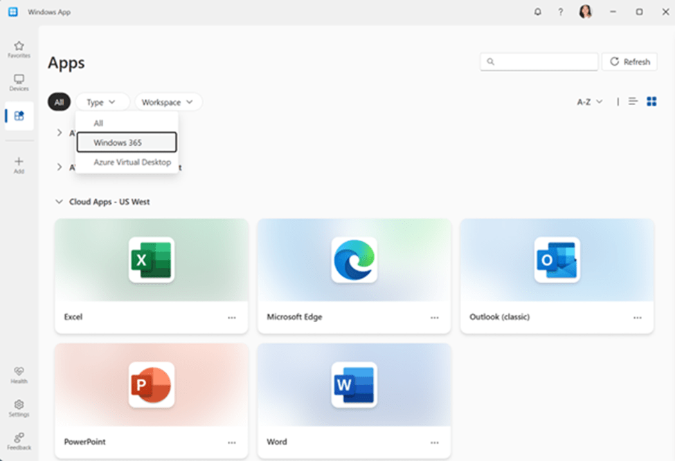 4. Browse back to “Windows 365.” You will now see an “All Cloud Apps” with apps that will be available to publish.